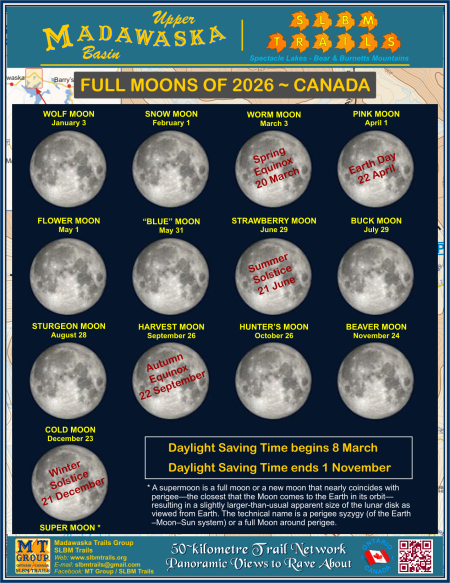 Full Moons in Canada 2026  2026-01-12: Below graphic identifies the 12 full moons that will appear in Canada for 2025.